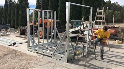El Steel Framing es un sistema de construcción formado por un entramado de perfiles obtenidos por el conformado de chapas laminadas en frío de acero galvanizados. Estas entramados que se arman con los perfiles se rellenan entre sí, con un aislante de lana de vidrio, que en una de sus caras posee una hoja de aluminio que actúa como barrera de vapor, luego estos son cubiertos con placas OSB y membrana hidrófuga para proteger Steel de la humedad, finalmente se coloca el revestimiento externo que da el acabado visible que son placas ceménticas o las terminaciones que desee el cliente, para el revestimiento interior de la casa se utilizan placas de yeso. Con este tipo de construcción se puede construir hasta tres pisos de altura y son transportables sin ningún inconveniente.